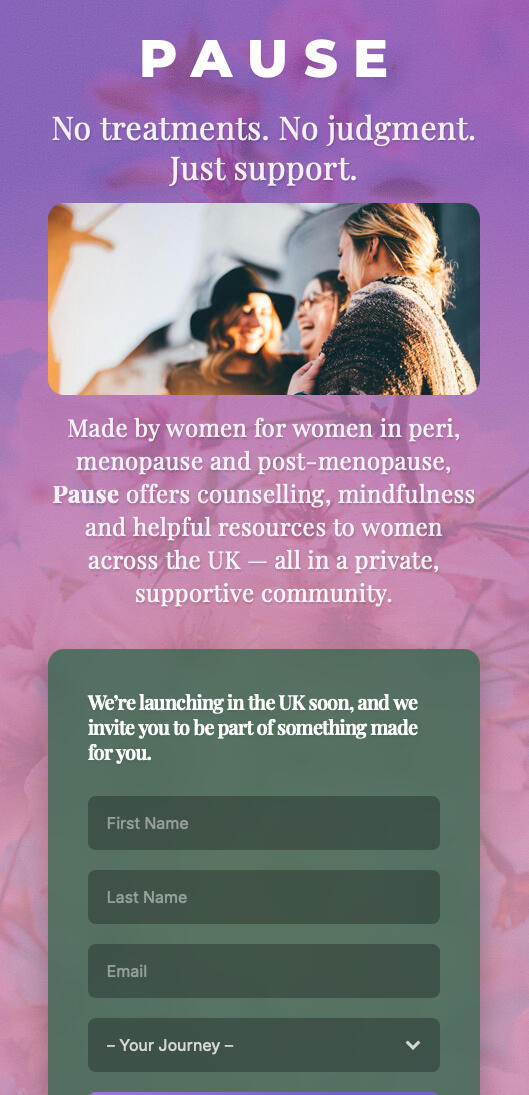 Founded with my partner, who’s a qualified therapist, member of the BACP, Pause is currently in private beta.